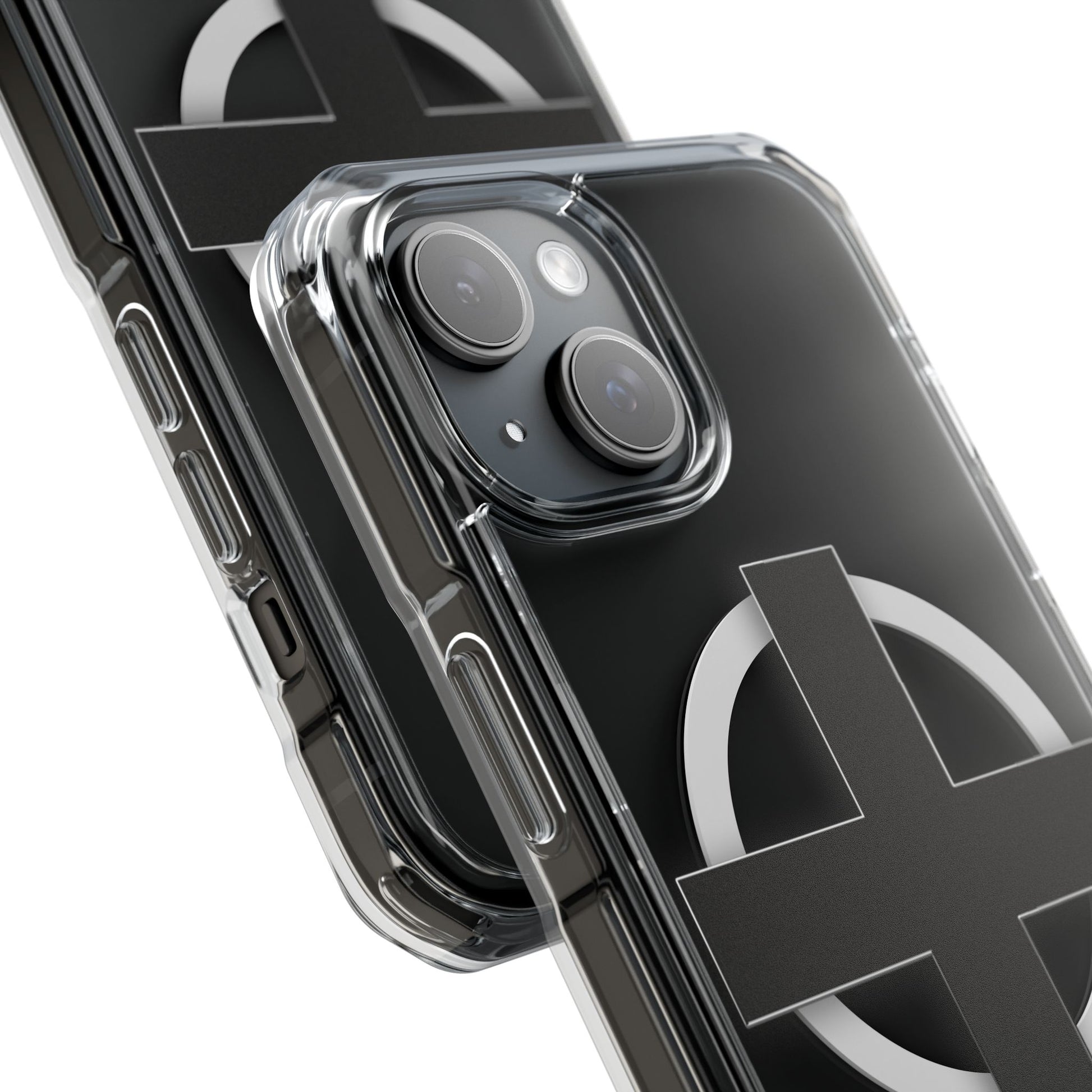 A slim, clear phone case that blends low-profile protection with magnetic convenience and bold, expressive design. The transparent polycarbonate back keeps your phone’s original color visible while showcasing artwork — here, a stark cross and subtle script — so the case reads like a wearable statement rather than bulky armor. Interior MagSafe®-compatible magnets lock compatible chargers and mounts in place. Soft TPU sides absorb shocks and feature air-cushioned corners for drop protection, while precise cutouts let you attach straps or charms. The result is a lightweight, everyday case that feels sleek in hand and holds up to daily life without hiding your phone’s look.